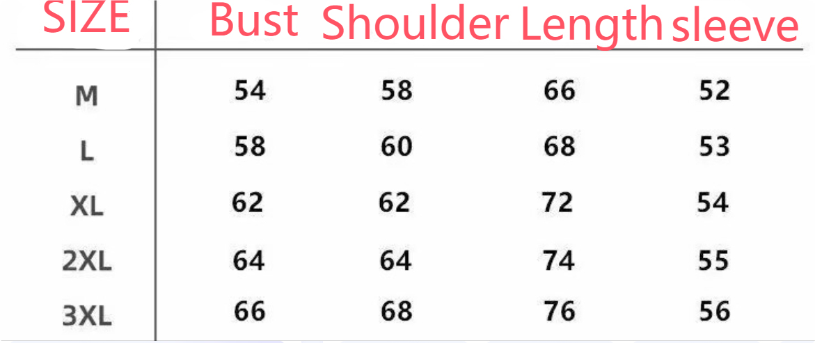 Sizes: M, L, XL, XXL, XXXL